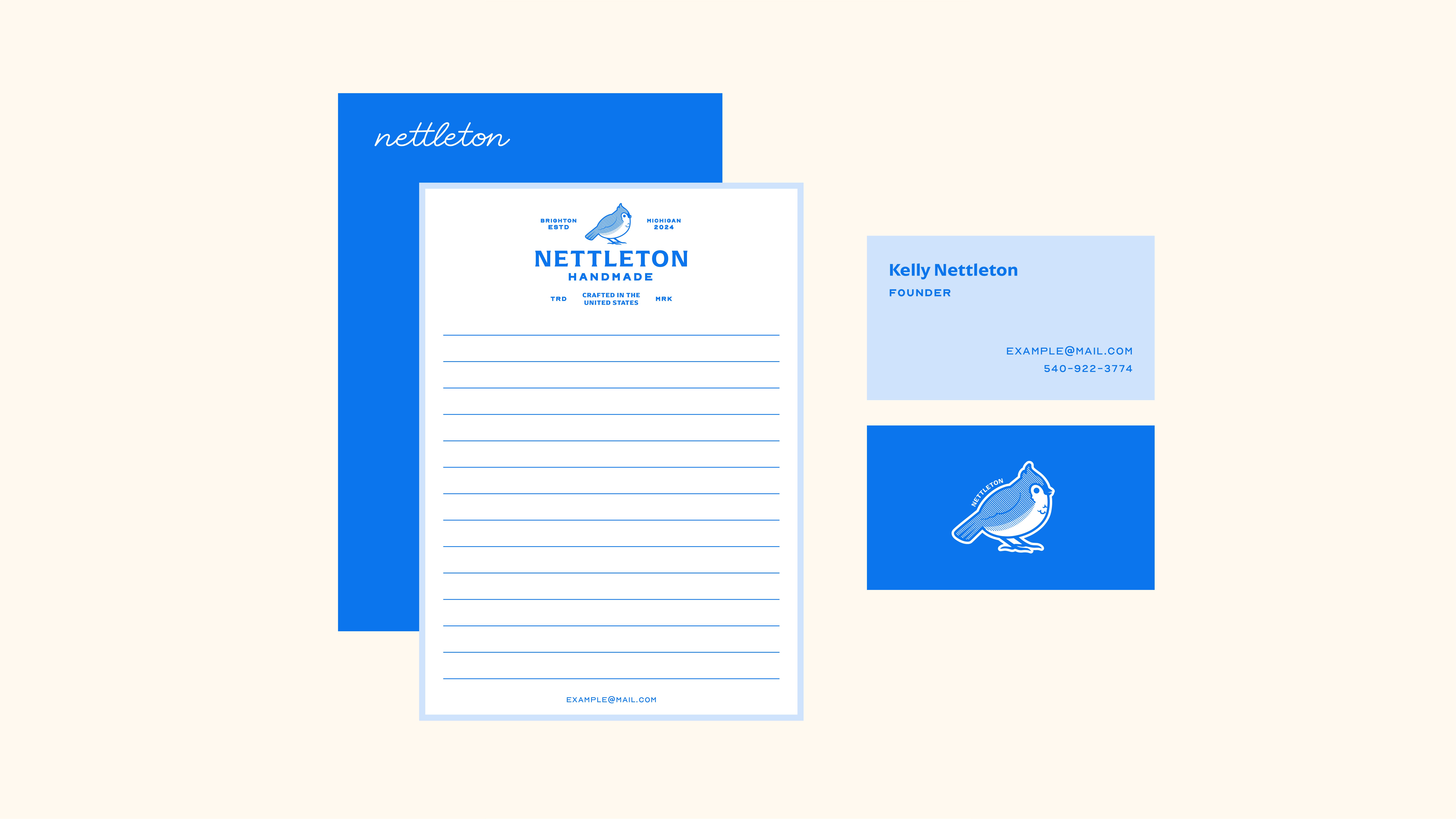 Nettleton Handmade is a custom woodworking and hand-knitting brand started by a couple with a love for birding. They wanted something that felt personal, and youthful. I designed a logo that reflects their creativity and highlights the handcrafted nature of their work, while also tying in their love for birds in a subtle way.